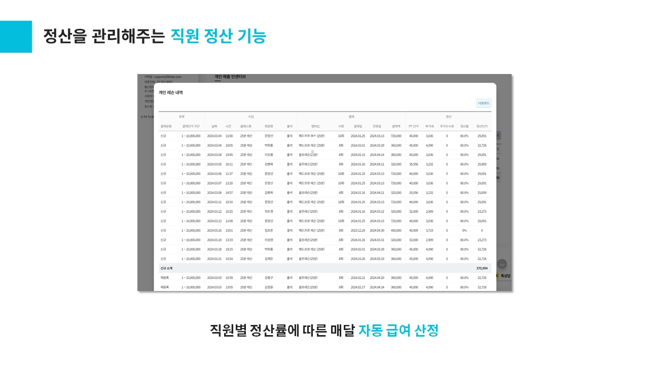 핏투비는 초기 사용이 어렵지 않아 새로운 사용자도 쉽게 접근할 수 있으며, 깔끔하고 직관적인 인터페이스로 사용자들의 작업 효율성을 높일 수 있습니다. 이러한 유용한 기능들이 사용자들에게 좋은 사용자 경험을 제공하고, 다른 회원관리 프로그램들과 구별되는 장점으로 자리 잡을 수 있습니다.