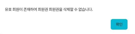 회원권을 삭제하려면 회원권을 사용하는 유효회원이 없어야 합니다.
