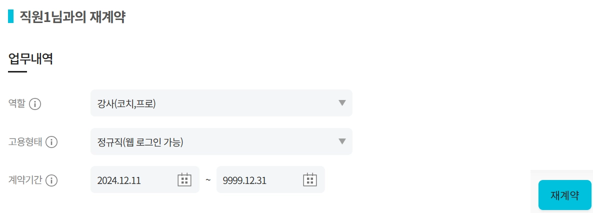 계약이 만료되가거나 과거의 직원을 재계약을 통해 업무를 연장합니다.