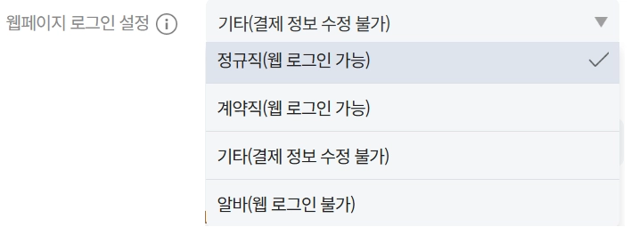 직원의 고용 형태를 나누어 접근권한을 부여 할 수 있습니다.