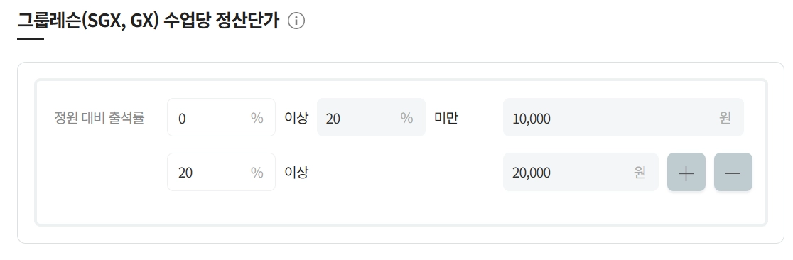 그룹 수업의 정원 대비 인센티브를 설정 가능합니다.