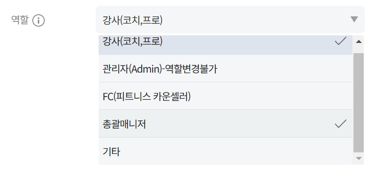 FC(피트니스 카운셀러): 상담 및 판매를 전담으로 하는 직원용 계정입니다. 매출을 조회할 수 있습니다.