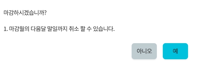 마감월의 다음달 말일이 지나면 취소 및 수정이 불가능합니다.