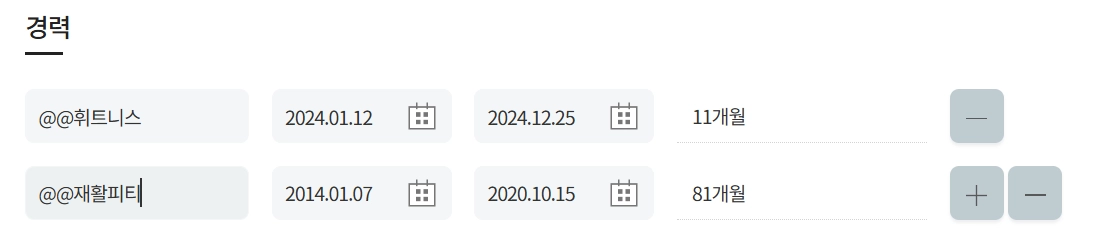 근무경력 기입이 가능합니다.