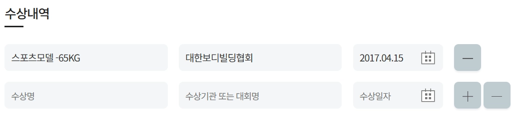 수상 내역 기입이 가능합니다.