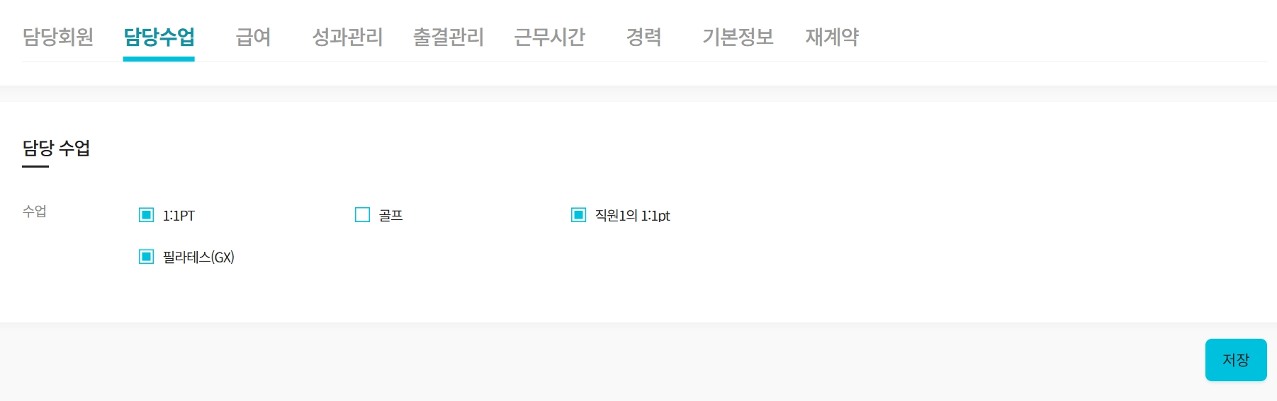 해당직원이 담당하는 수업을 지정 가능합니다.