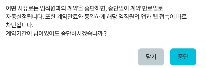 계약중지: 계약 만료일 이전에 계약을 중지하고 코치의 권한을 차단하는 기능입니다.