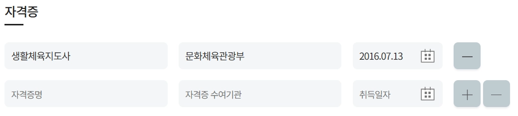 소지한 자격증을 기입 가능합니다.