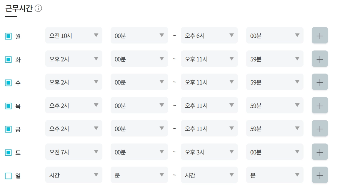 근무시간: 직원의 근무시간을 설정하여 근무시간 외에는 일정을 잡을 수 없습니다.