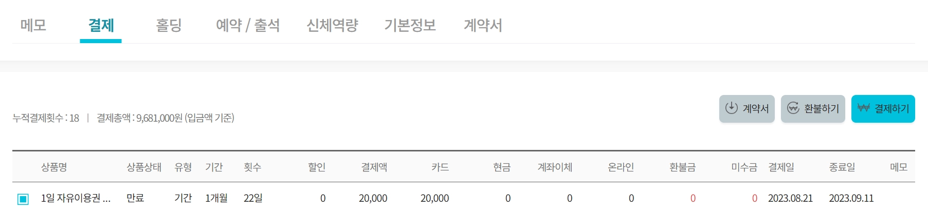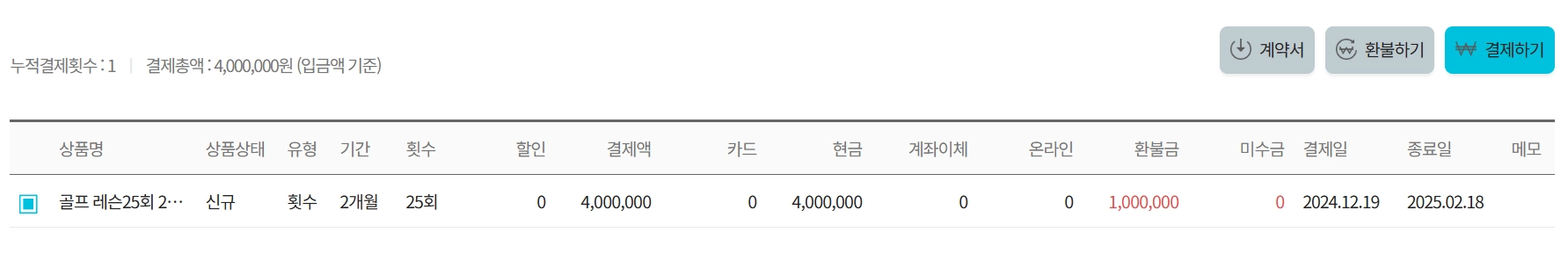 환불하기 - 회원권은 살아 있지만 금액만 환불하기