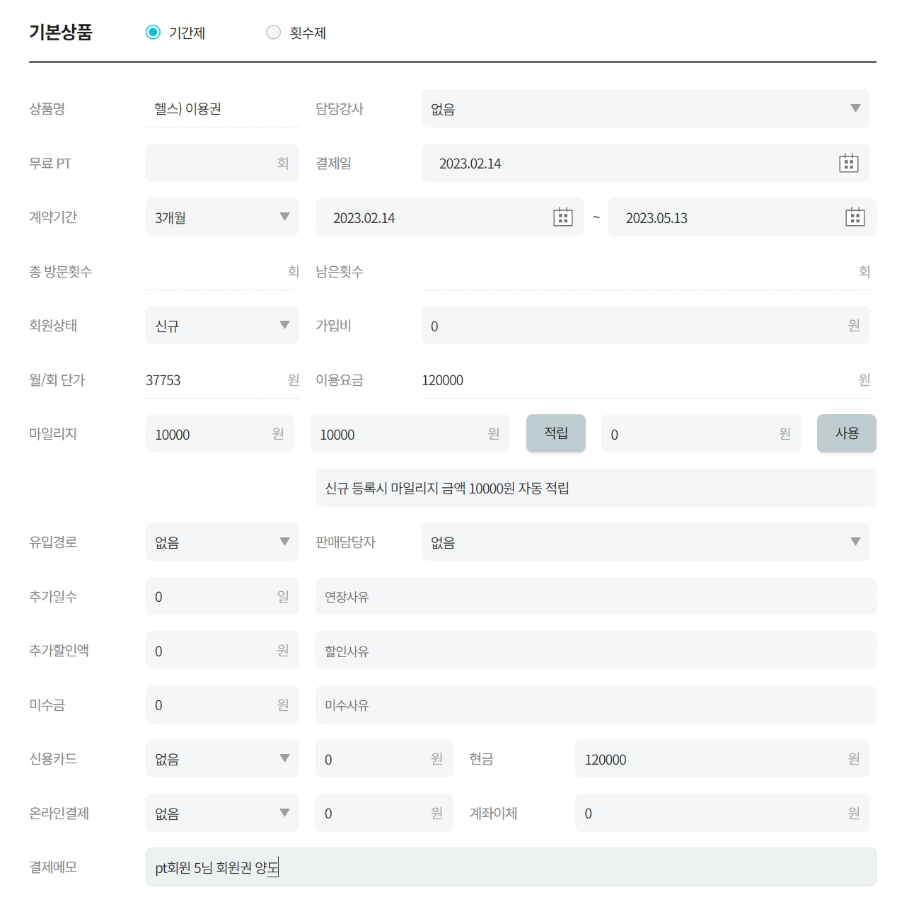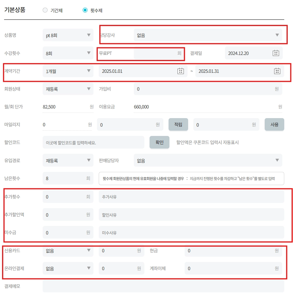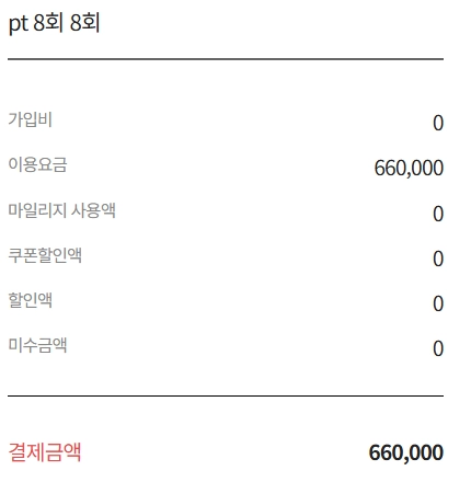 동일한 상품의 결제이므로 상품명, 수강횟수는 고정입니다.