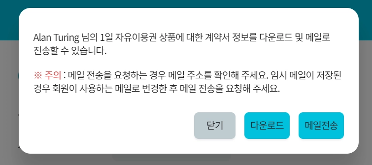 회원의 결제내역 별로 계약서를 다운로드 받을 수 있습니다.