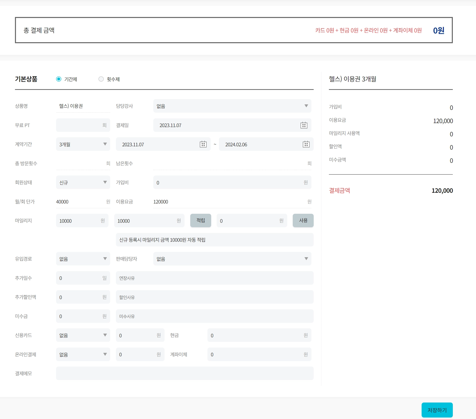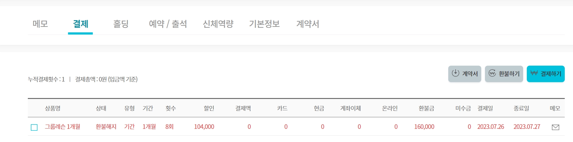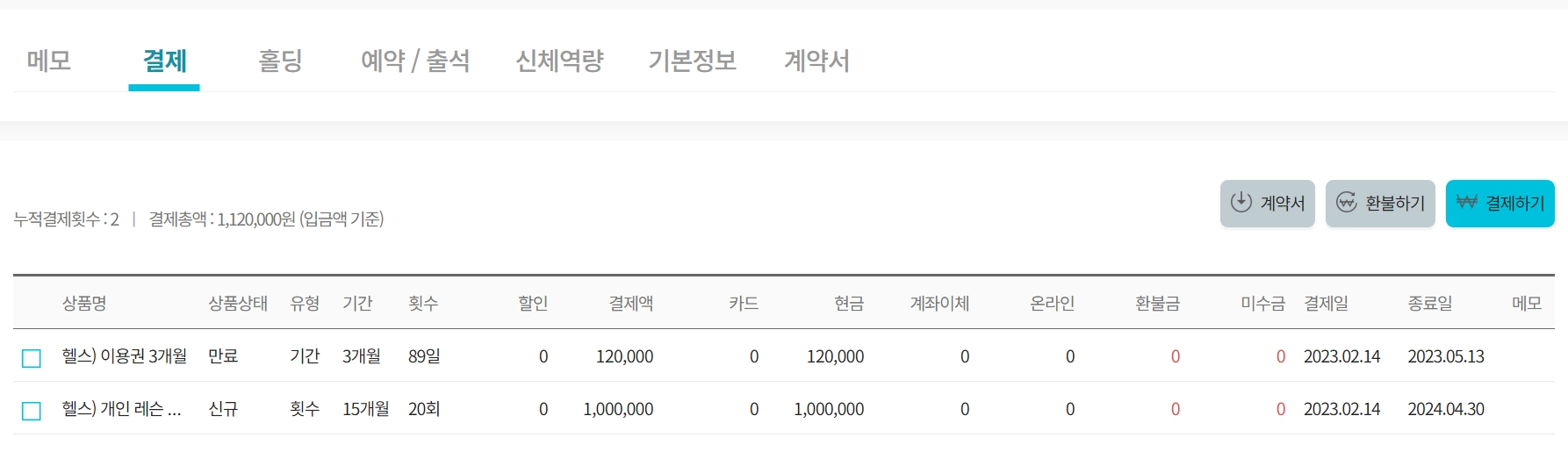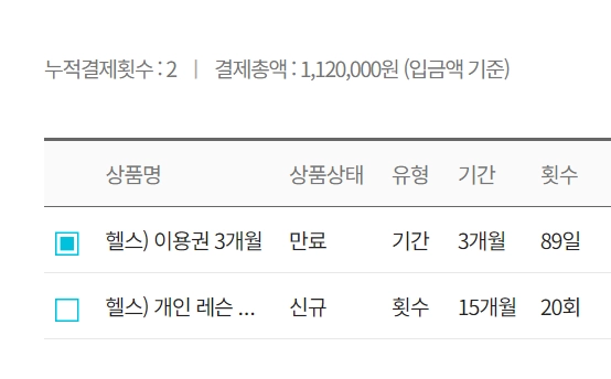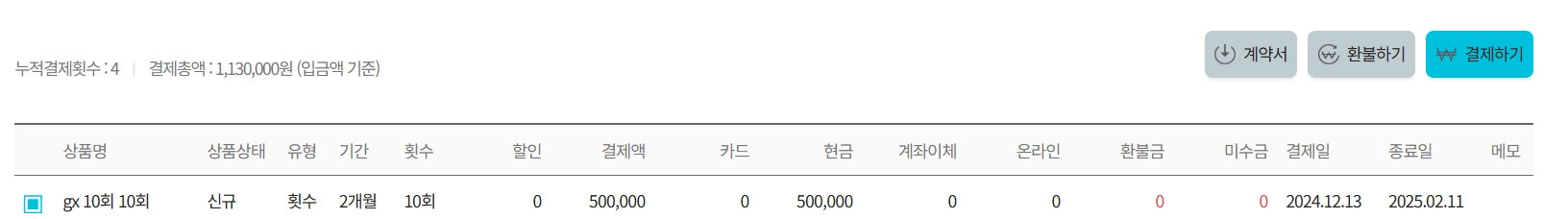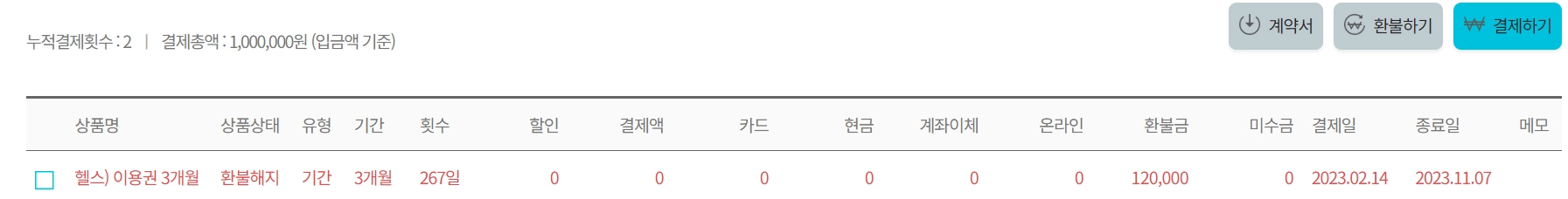 회원의 누적 결제 횟수와 총액이 나타납니다.