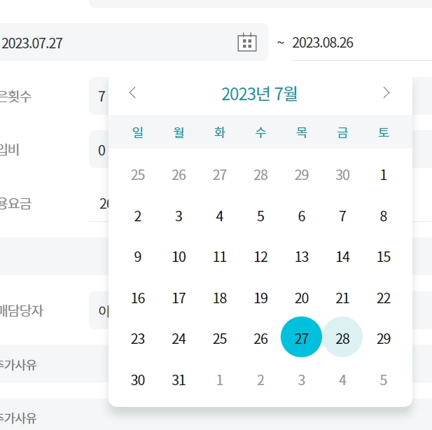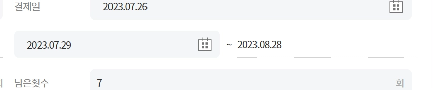 예시) 이 회원권은 오늘 날짜(2023.07.28) 기준 회원권 시작일이 2023.07.27 이기 때문에