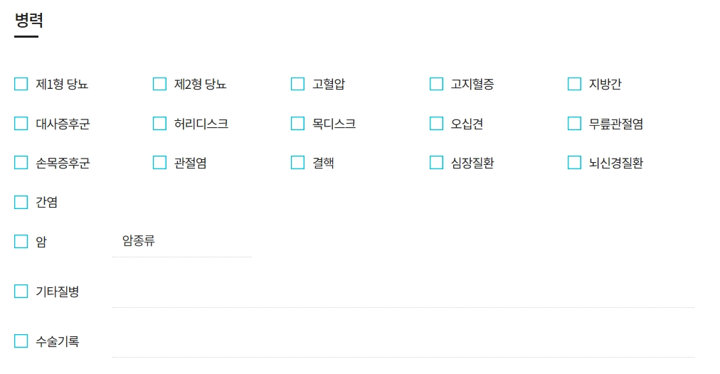 현재 가지고 있는 병력을 체크하여 운동 플랜에 참고합니다.
