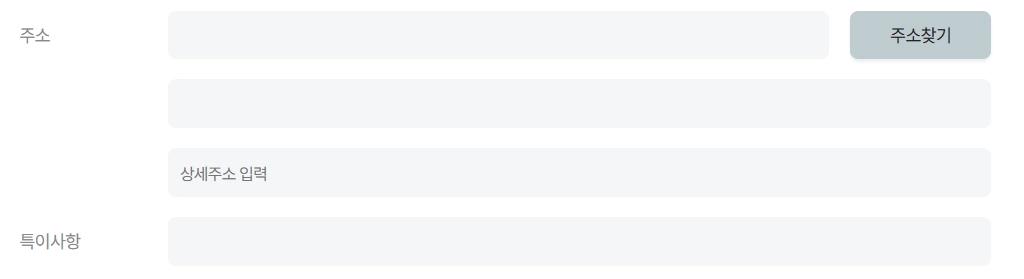 주소와 특이사항을 적을 수 있습니다.