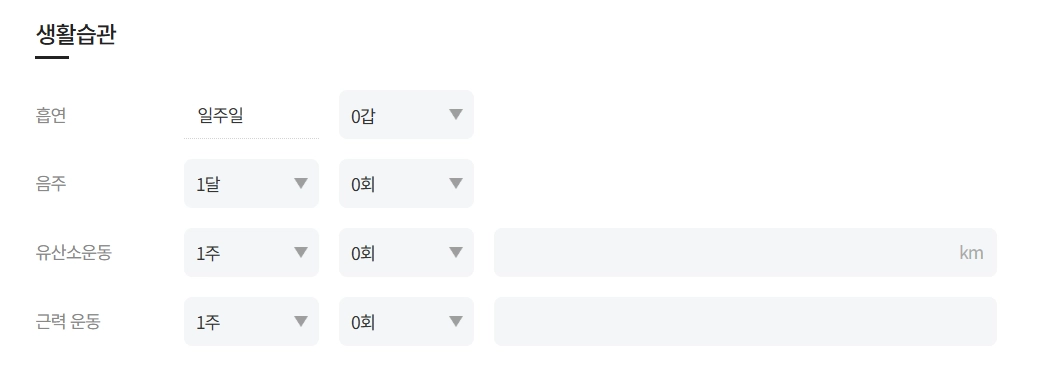 생활습관을 기록하여 운동 플랜에 참고합니다.