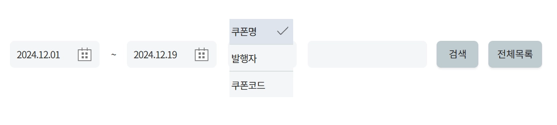 발행한 쿠폰을 쿠폰명, 발행자, 코드별로 검색 할 수 있습니다.