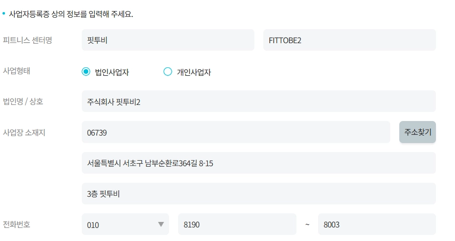센터와 대표의 기본정보를 입력하는 곳입니다.