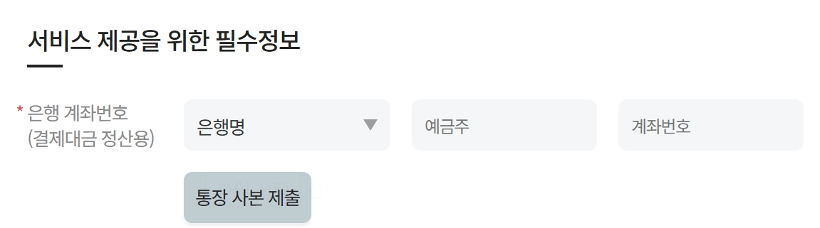 통장사본 (결제대금 정산용): 결제 대금 정산을 위해 센터에서 사용하는 은행명과 해당 통장의 사본을 제출해야 합니다. 이를 통해 결제된 금액이 정확히 센터 계좌로 입금되게 됩니다.