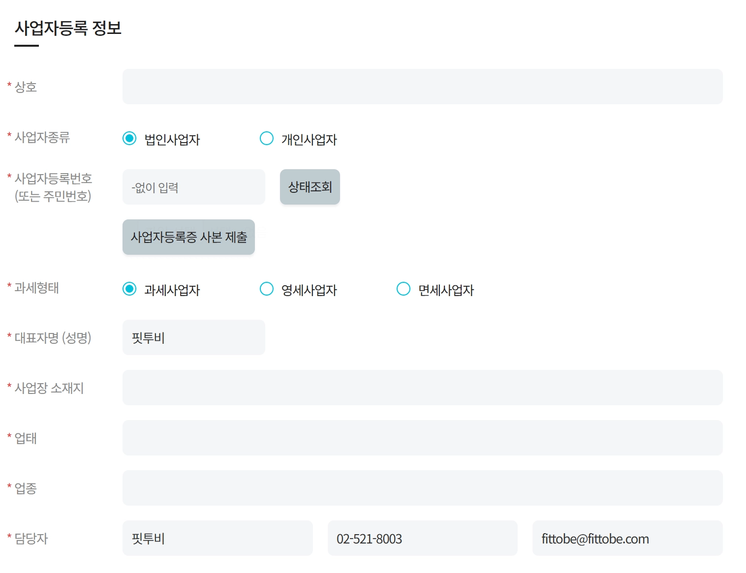 핏투비 페이 신청을 위해서는 다음과 같은 기본 정보를 준비해야 합니다.