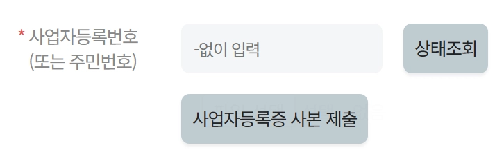 사업자 등록증: 위에서 기입한 정보가 실제 사업자 등록증과 일치하는지 확인 후 제출합니다.