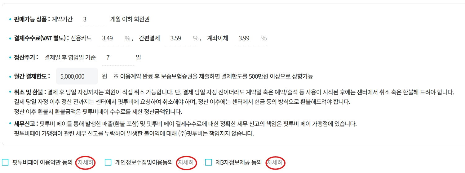 핏투비 페이에는 센터 운영에 필요한 이용 약관을 등록할 수 있습니다.