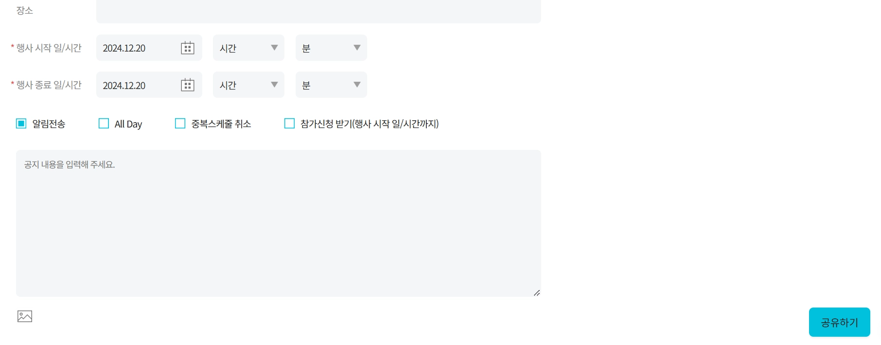 알림전송: 등록하는 공지를 회원에게 알림이 가는 기능입니다.