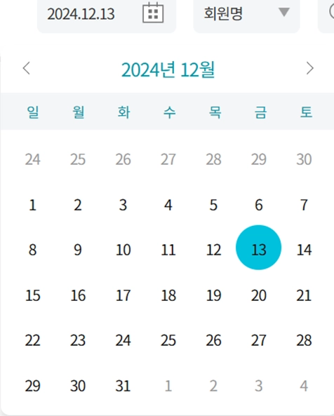 특정 날짜, 특정 회원만 선택하여 검색해볼 수 있습니다.