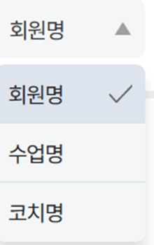 회원명, 수업명, 코치명으로 따로 검색이 가능합니다.