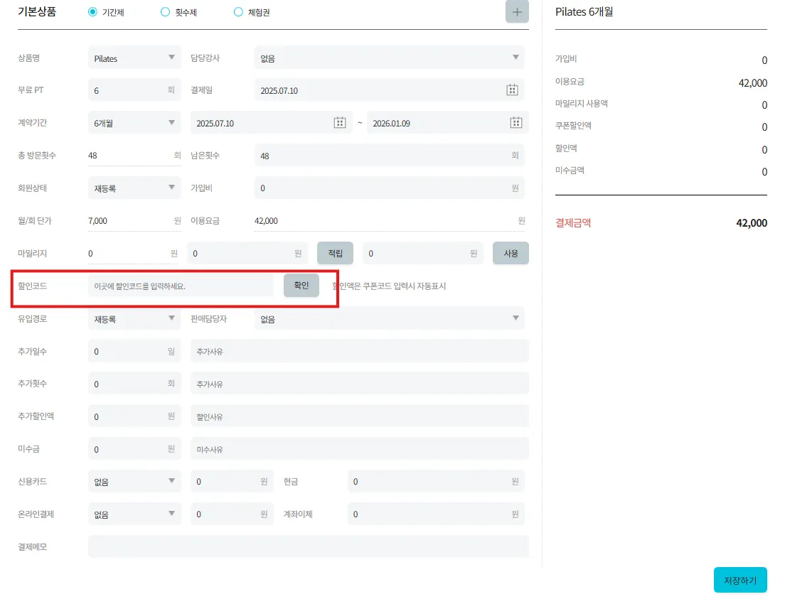 회원 결제 시 적용방법