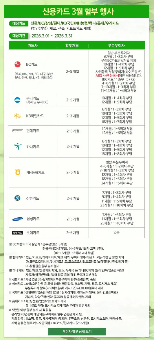 [핏투비페이] 3월 카드사 무이자할부 혜택 안내(03.02)