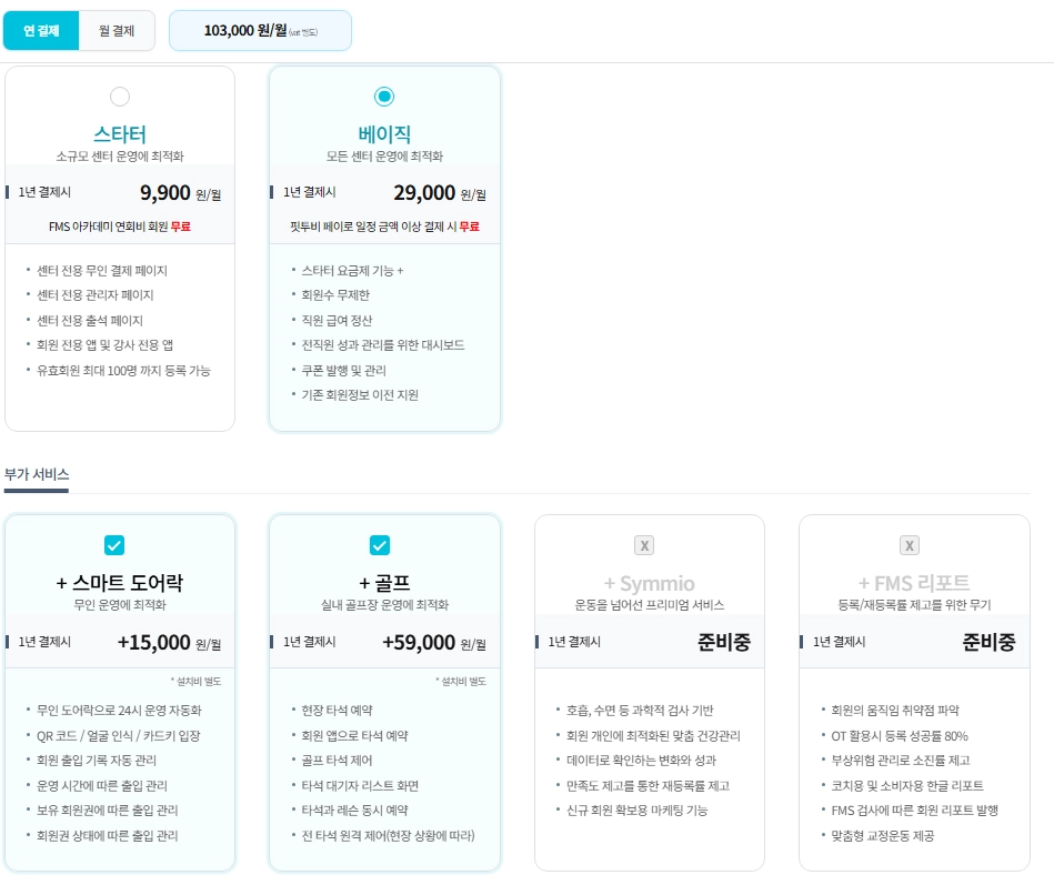 핏투비 이용료에는 기본서비스, 부가서비스 두가지가 있습니다.