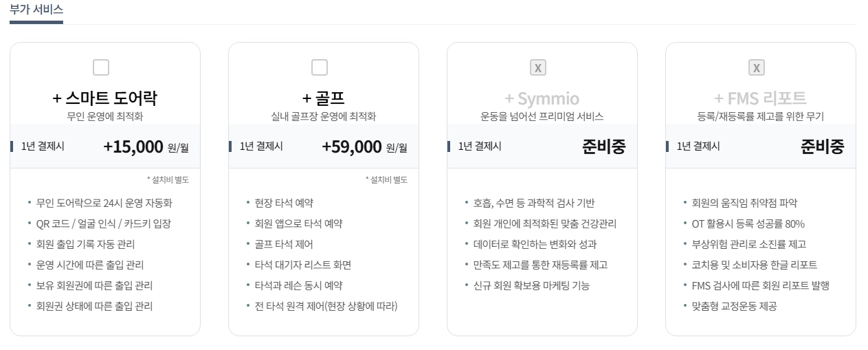 예시1) 유효회원수 100명 초과 센터에서 골프와 무인운영을 원하는경우