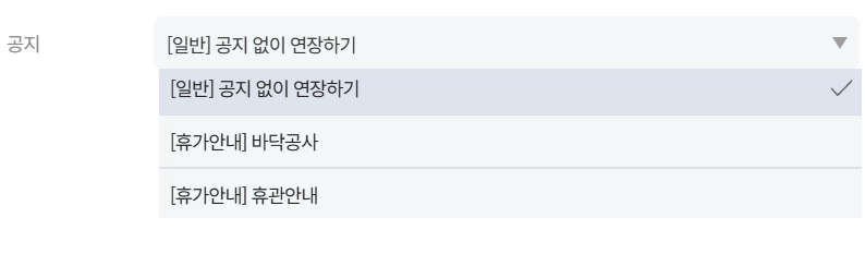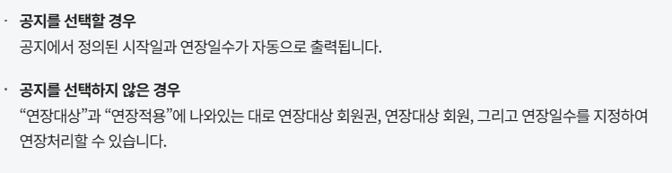 작성한 공지가 없다면 “공지 없이 연장하기”를 클릭합니다.