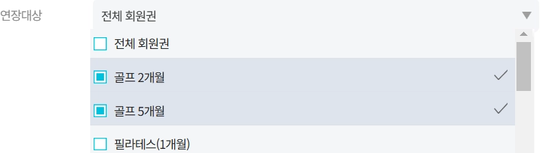 연장대상: 일괄연장 하려는 회원권을 선택합니다.