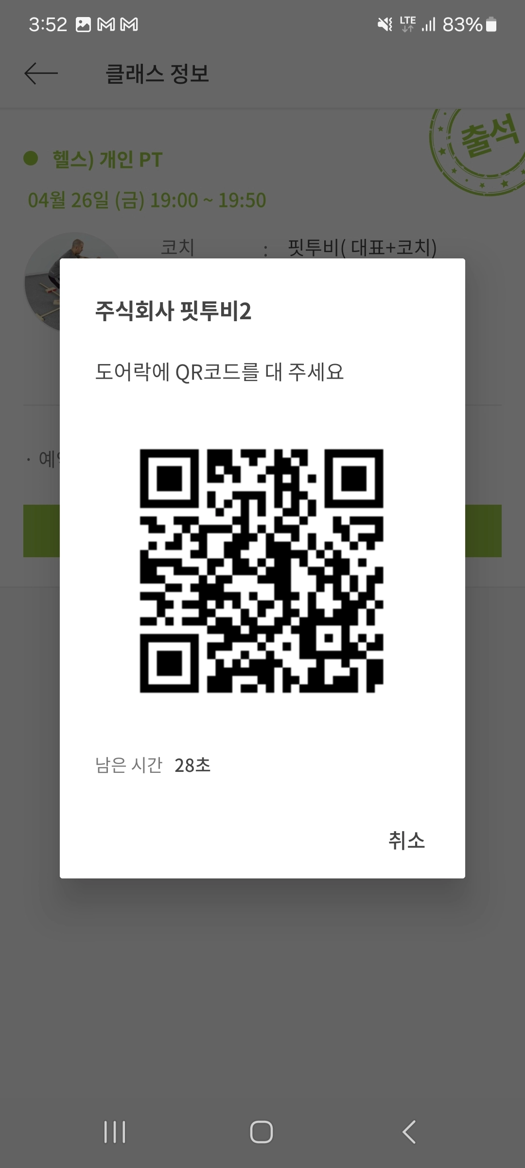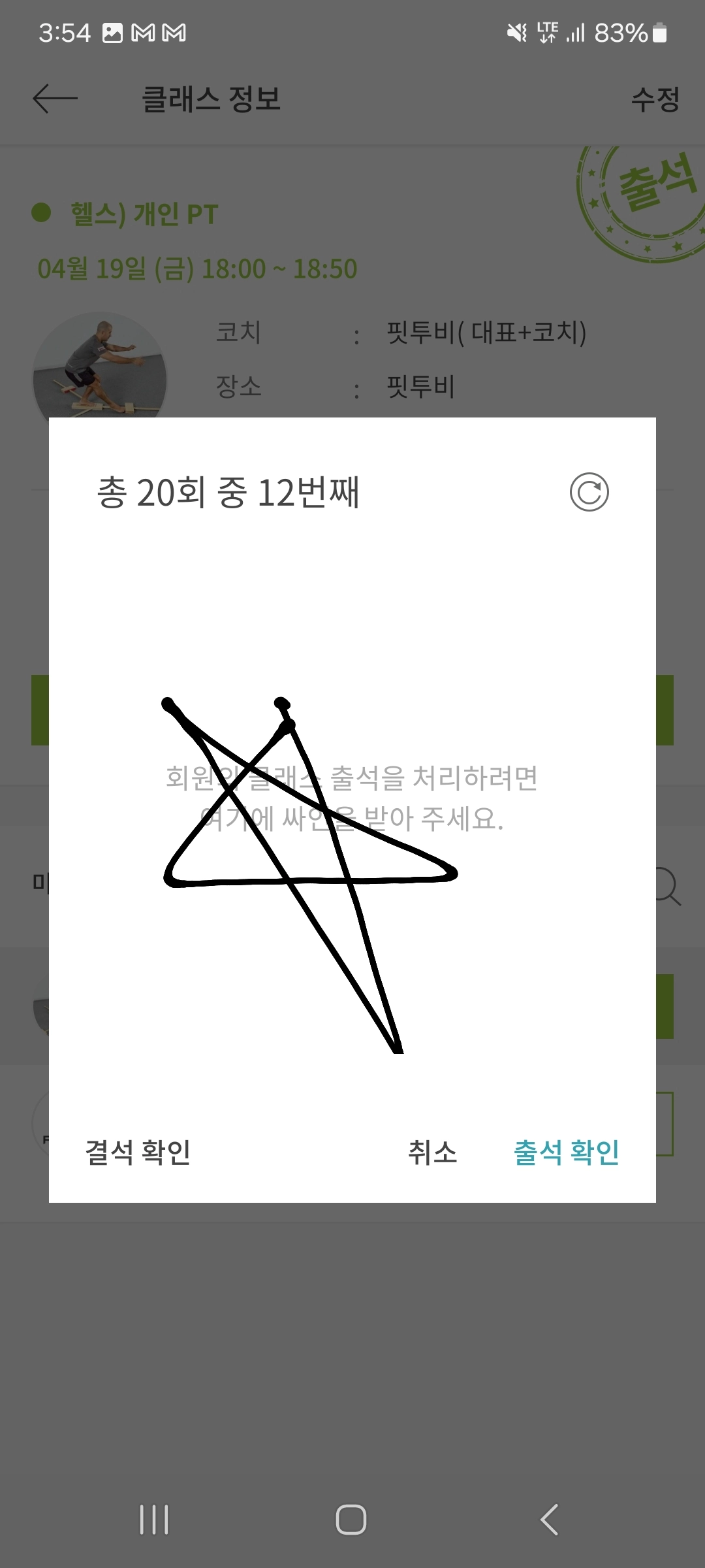 3. 핏투비 코치 앱을 이용한 전자 출결 싸인