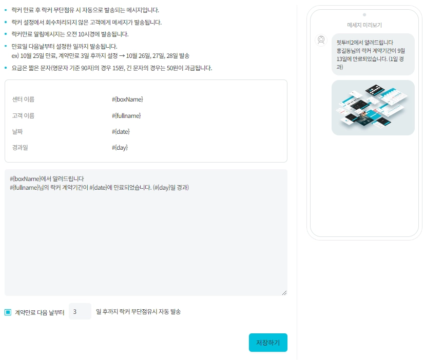 락커 만료 메시지 - 락커 만료 후 락커 무단점유 시 자동으로 발송되는 메시지