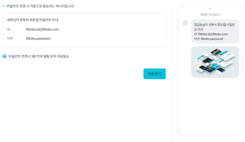 핏투비 자동 문자 메시지의 항목이 추가 되었습니다.
