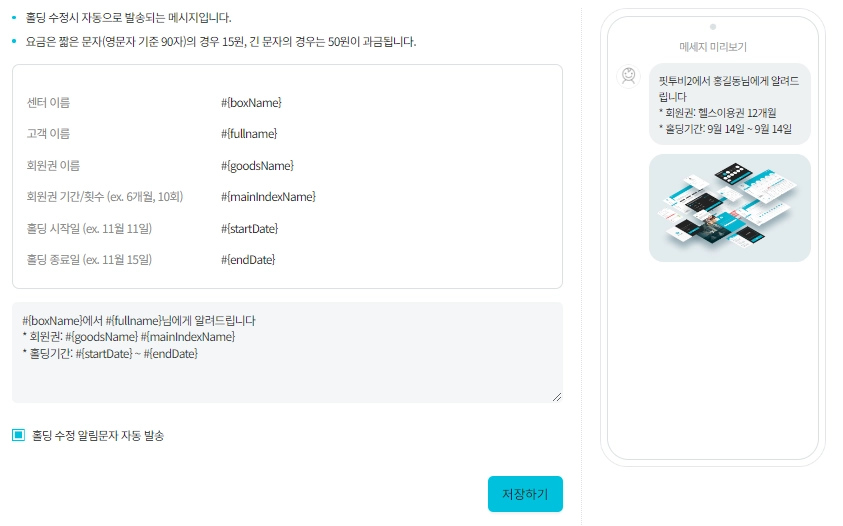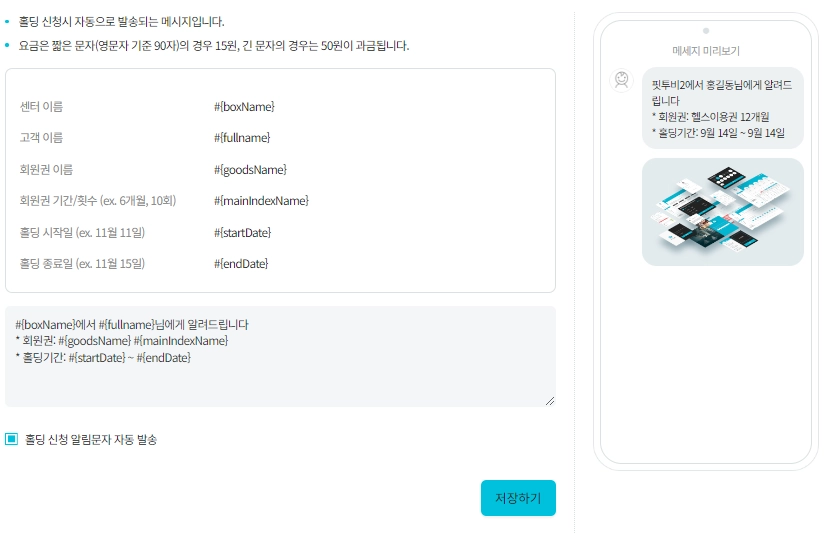 회원권의 홀딩을 수정 할 시 보내는 자동 메시지가 추가되었습니다.