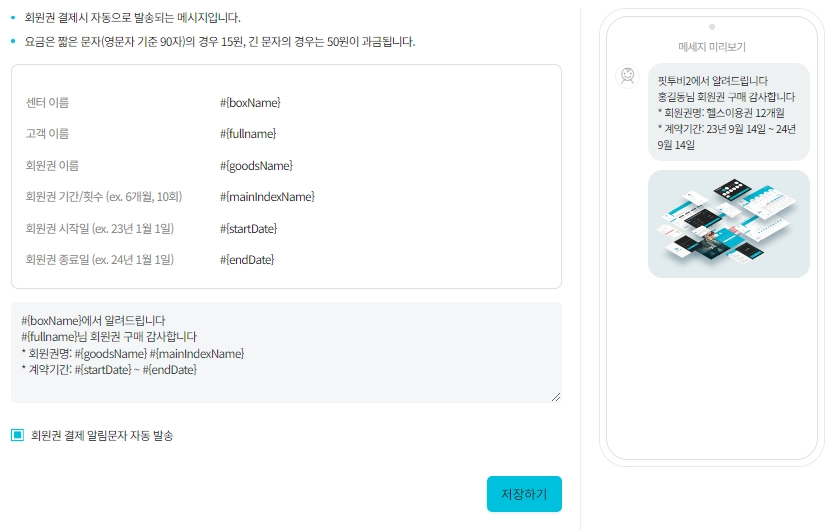 회원권 결제 메시지 - 회원권 결제시 자동으로 발송되는 메시지