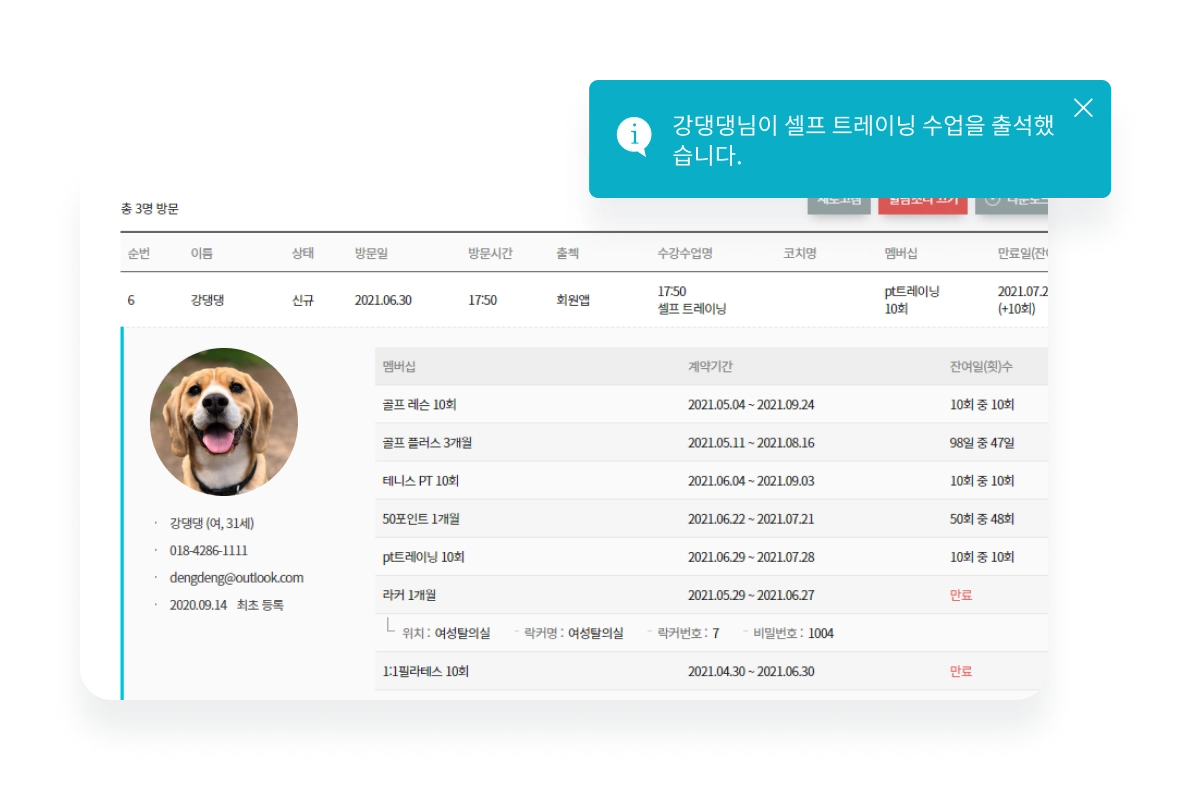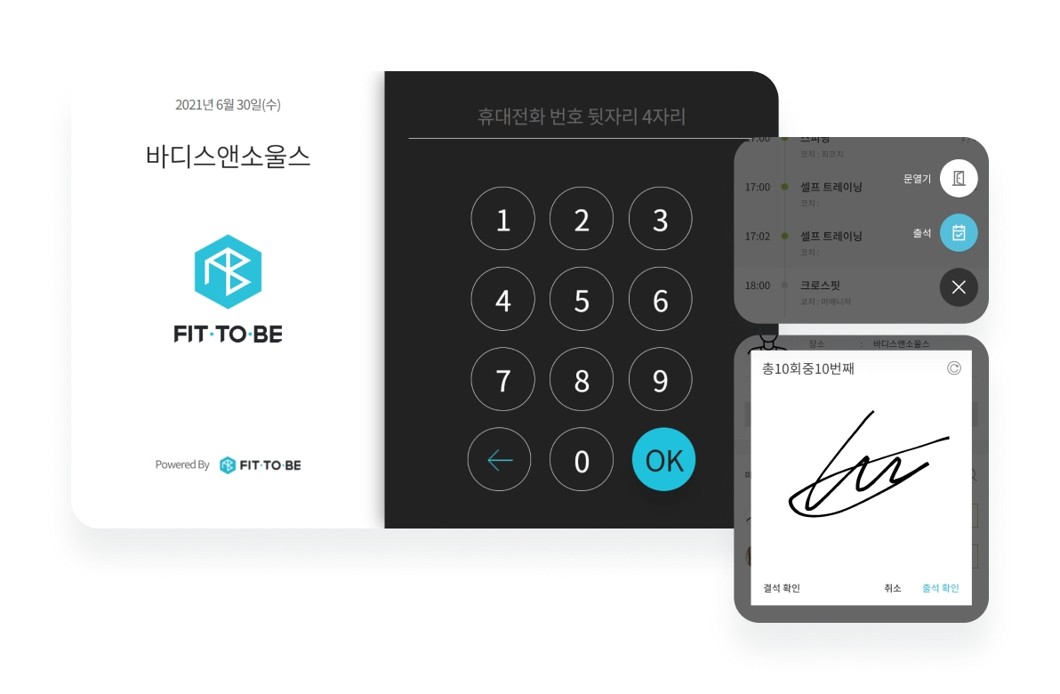 터치스크린을 통한 출석체크. 앱을 통한 출석체크, 전자서명을 통한 출석체크 모두 센터에 맞게 적용 가능합니다.또한 노쇼를 방지하기 위한 결석 시 횟수 차감 정책 또한 설정하실 수 있습니다.