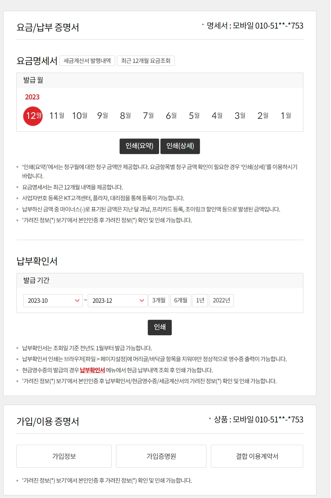 이용계약증명서는 휴대폰 AS, 환불 등에 필요하신 경우 발급받으실 수 있는 서류입니다. 발급 방법은 아래와 같습니다.