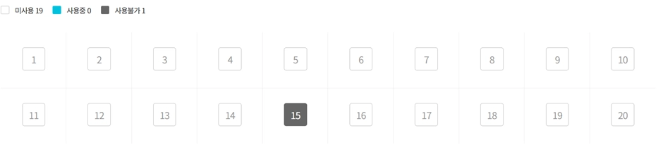 좌석의 고장 혹은 여러 이슈로 해당 좌석 예약이 어려울경우 하얀색 해당좌석을 클릭하고 사용불가처리하기를 클릭해 주세요.