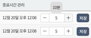 종료시간 관리: 종료시을 인위적으로 줄이거나 늘려드릴 때 사용합니다. 사용 중인 좌석 번호를 누른 후 “저장” 버튼을 눌러 시간을 수정합니다.