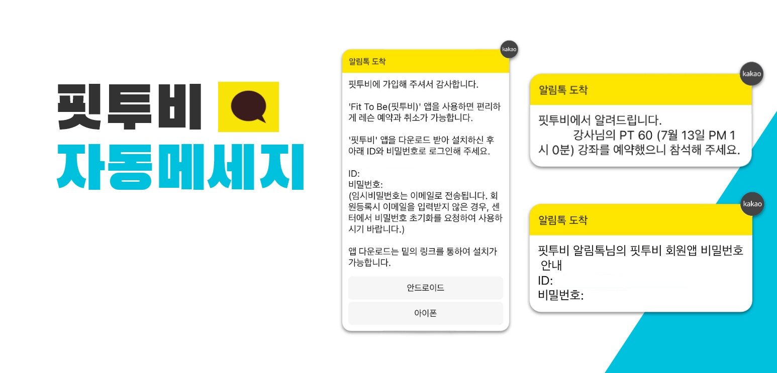 핏투비 카카오톡 자동메시지를 이용할려고 하면 카카오 비즈니스 계정이 있어야 합니다.