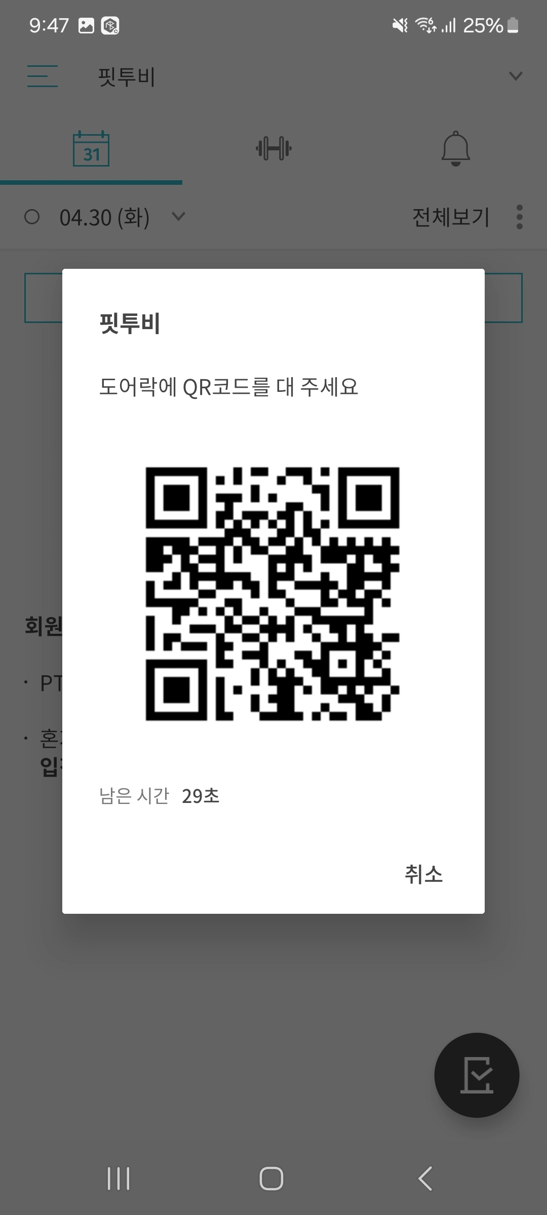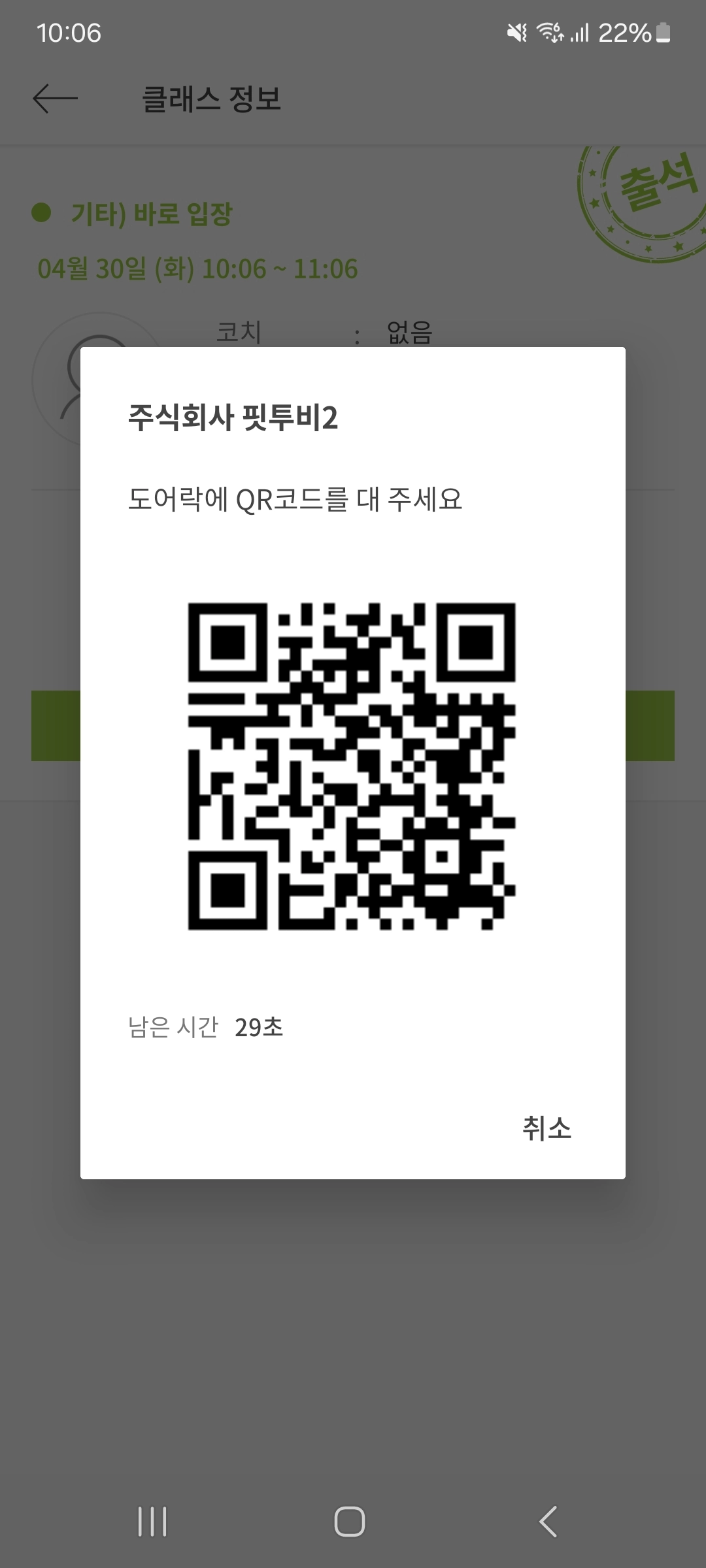 비콘을 통하여 출석 처리가 확인이 되야지만 QR코드가 발급 되기 때문에 회원은 무조건 출석처리를 해야합니다.