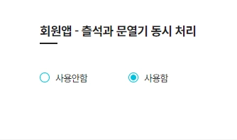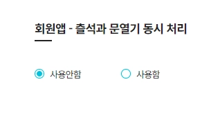 회원앱 - 출석과 문열기 동시 처리 옵션은 핏투비 옵션에서 선택 할 수 있습니다.