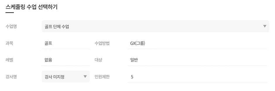 GX일정에서 수업이 없는 빈 셀을 누르게 되면 수업등록이 가능합니다.